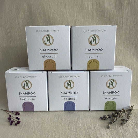 • Die Kräutermagie - Festes Shampoo "Harmonie" mit Nachtkerzenöl & violetter Tonerde