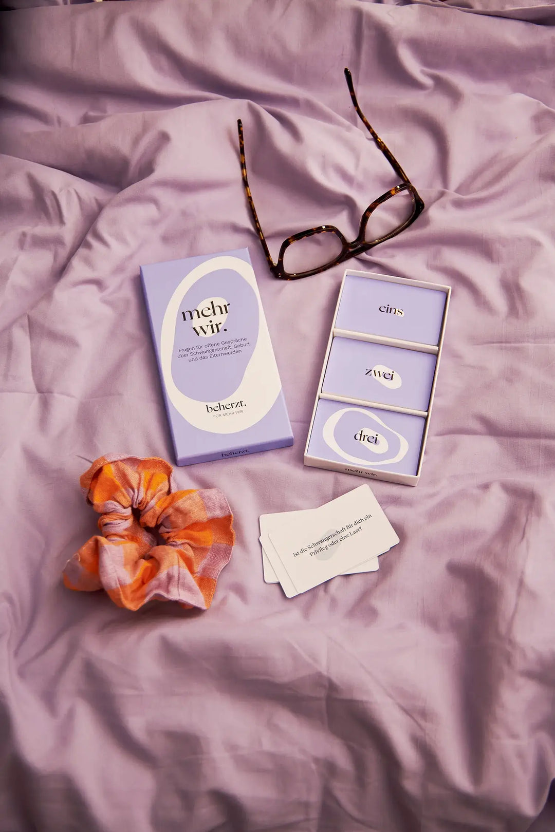 Das Kartenset mehr wir. lädt werdende Eltern ein, ins Gespräch zu kommen – über Wünsche, Werte, Erwartungen und auch Sorgen. Mit 90 Fragen begleitet es durch die gesamte Schwangerschaft: vom positiven Test bis zur Geburt.