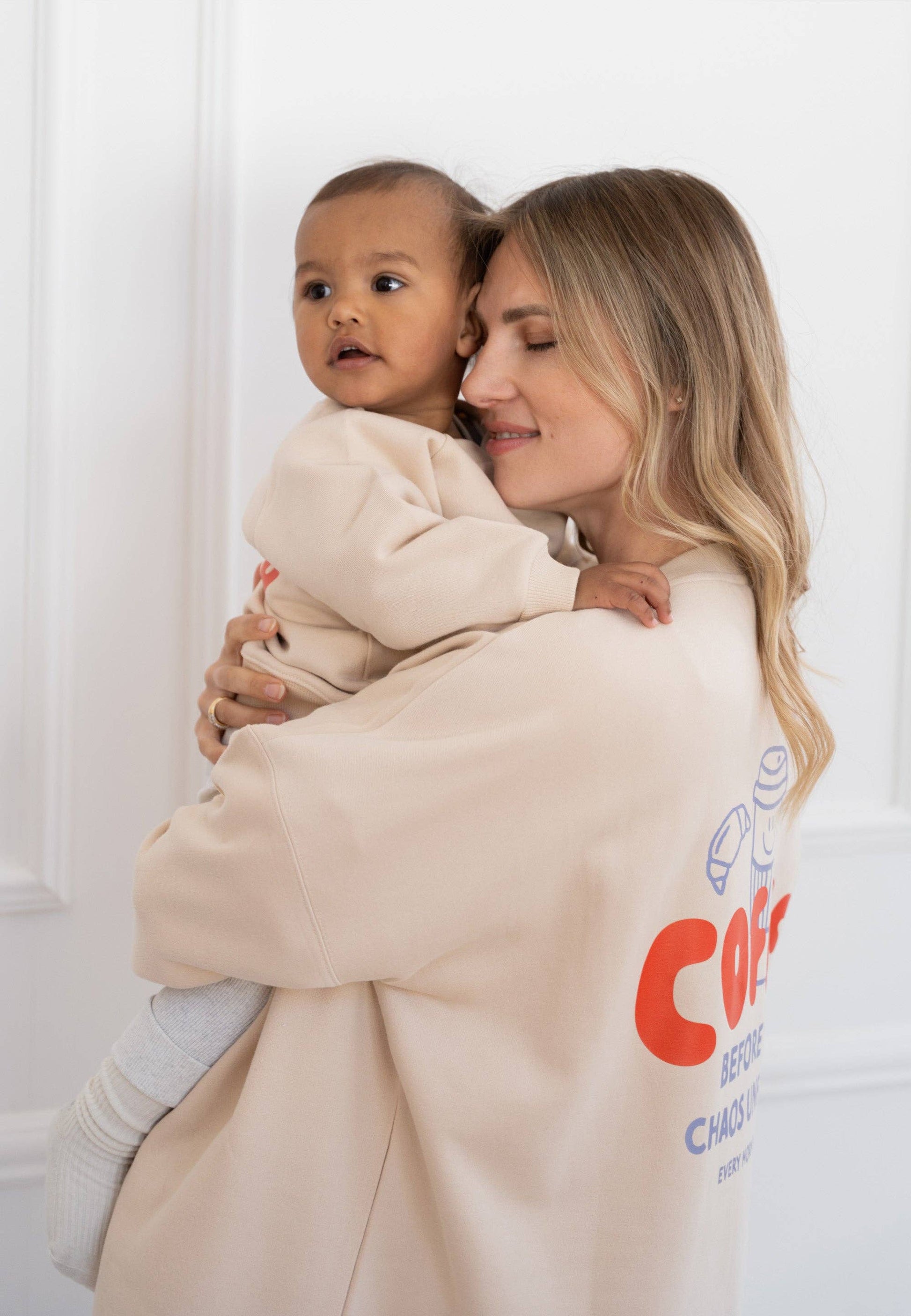 Lässig, cozy und mit viel Liebe entworfen: Unser beige Coffee-Sweatshirt kommt im Oversized Fit mit "6am" Print vorn und dem Statement "Coffee before the Chaos evolves" auf dem Rücken.