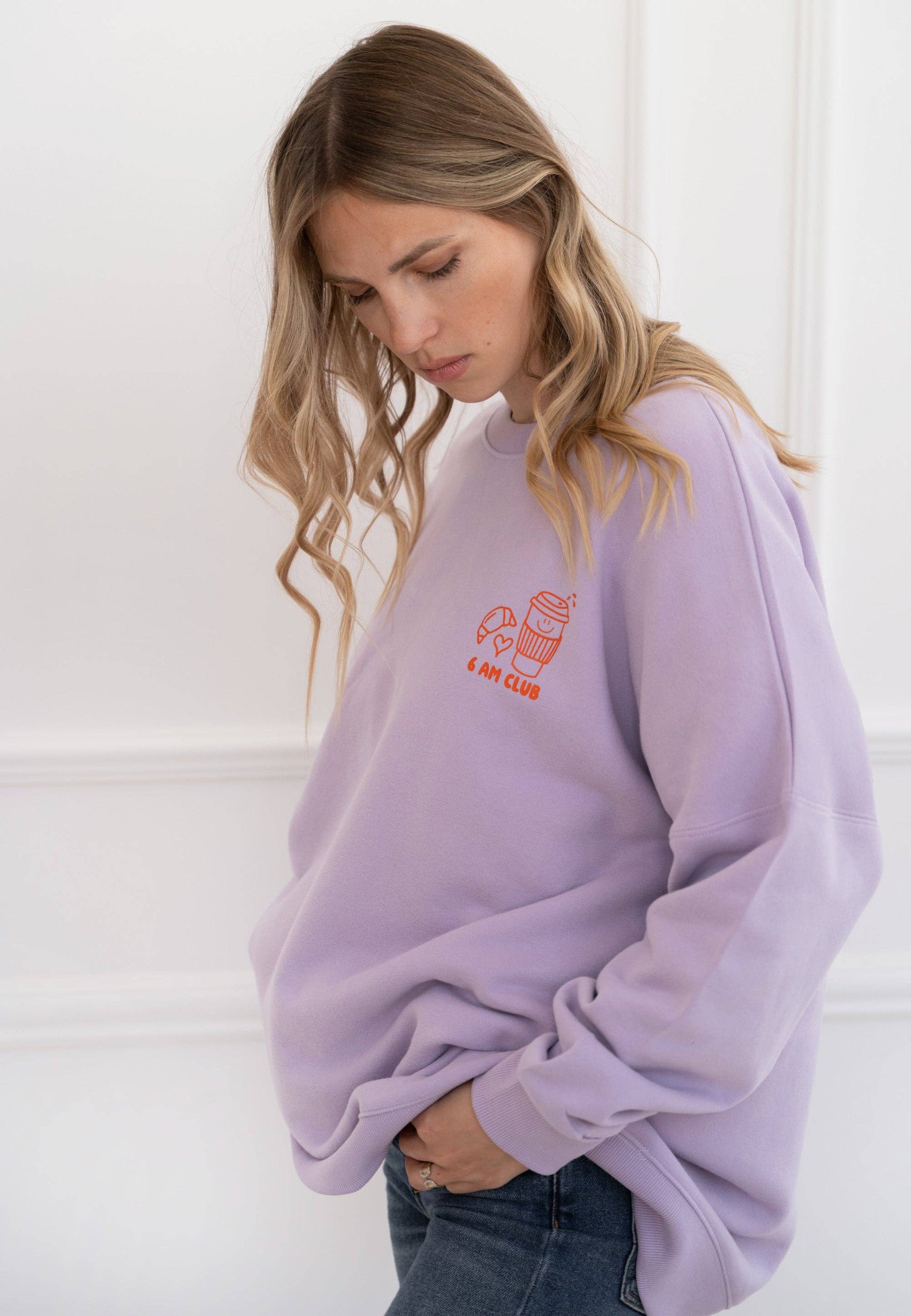 Unser flieder Coffee before Chaos evolves -Sweatshirt ist wie gemacht für müde Superheld*innen: cozy, lässig und mit ganz viel Liebe designt.