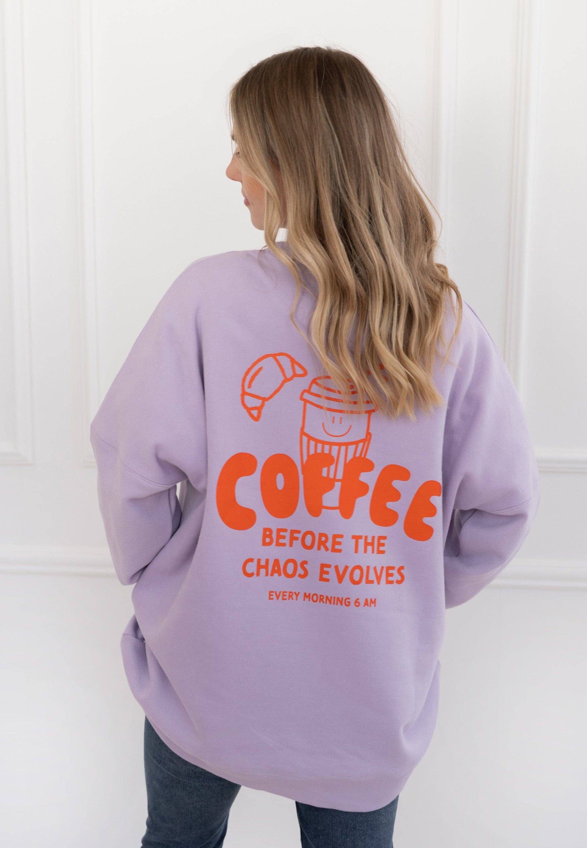 Erwachsenen Sweatshirt Coffee before Chaos flieder