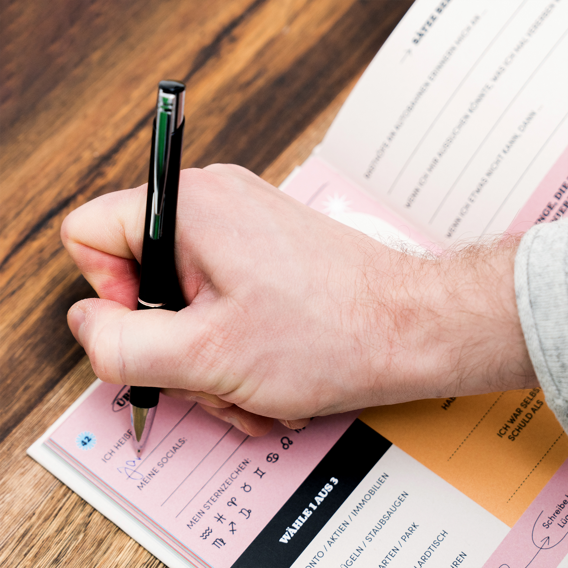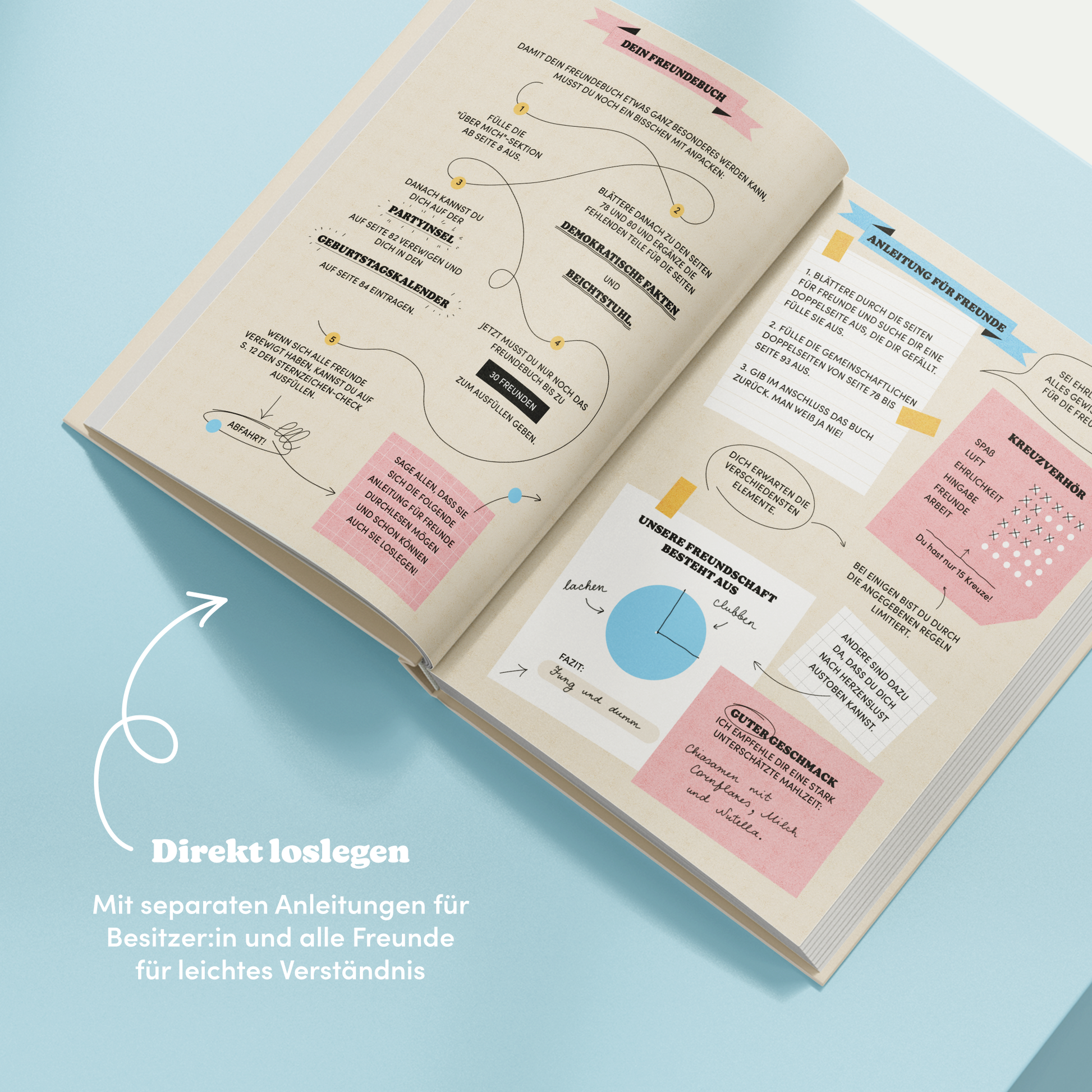 Unser Freundebuch für Erwachsene bringt genau das mit, was viele Kund:innen suchen: etwas Persönliches, etwas zum Schmunzeln - und etwas, das verbindet. Ob als Geschenk, WG-Erinnerung, Abschiedsgeschenk im Büro oder einfach aus Spaß: Das Buch lädt mit 100 individuellen Seiten zum Eintragen ein und wird schnell zum individuellen Erinnerungsstück voller Handschrift und Herz.