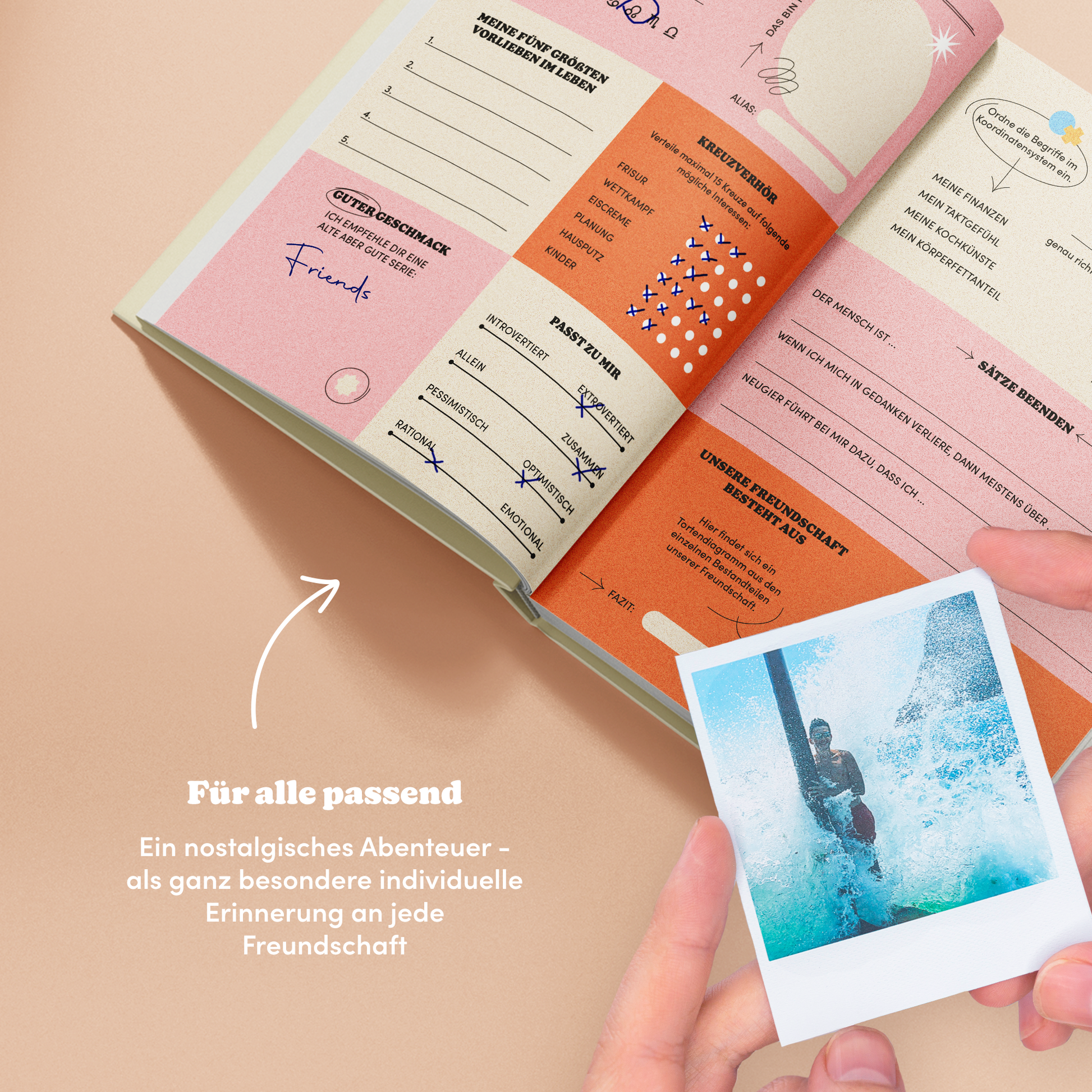 - Nostalgie neu gedacht: Freundebücher kennt jeder – aber dieses ist für Erwachsene. Mit frechen Fragen, charmanten Details und liebevoller Gestaltung.